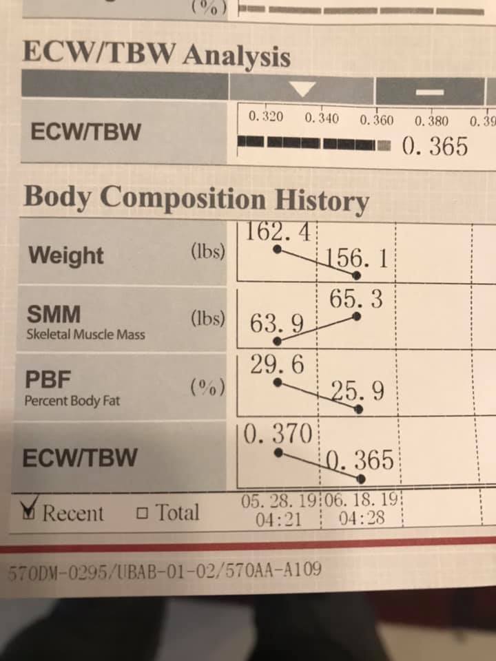 She spit out results that my #gymsquad assures me are very good. I lost 4% body fat and gained 2 lbs of muscle 🤷🏻♀️🔥💪🏼